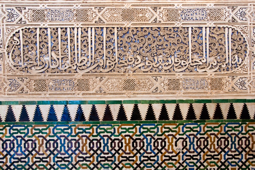 Islamic art is really interesting and beautiful! One of the key features of this art is that it doesn’t include human figures. Instead, artists create stunning geometric patterns and floral designs. This is an important tradition in Islamic culture, where avoiding pictures of people is common. A fantastic example of this type of art is the Alhambra Palace in Spain. Built many years ago, the Alhambra is like a giant museum filled with incredible artwork! Its walls are covered with colorful tiles and amazing patterns that look like they were made with math. The way the shapes fit together perfectly is really impressive!